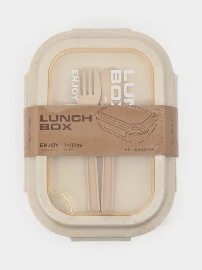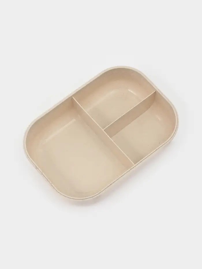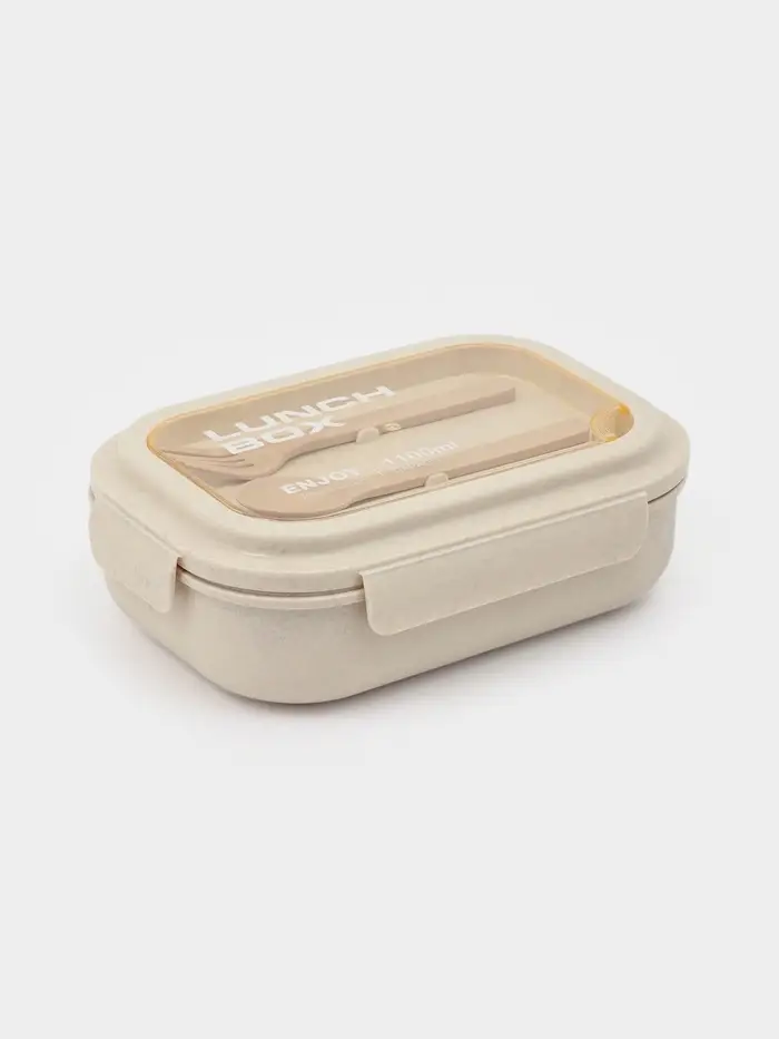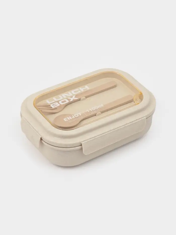 Ланч-бокс , 3 отделения, вилка и ложка, размер 22х16х6,5 см, цвет бежевый