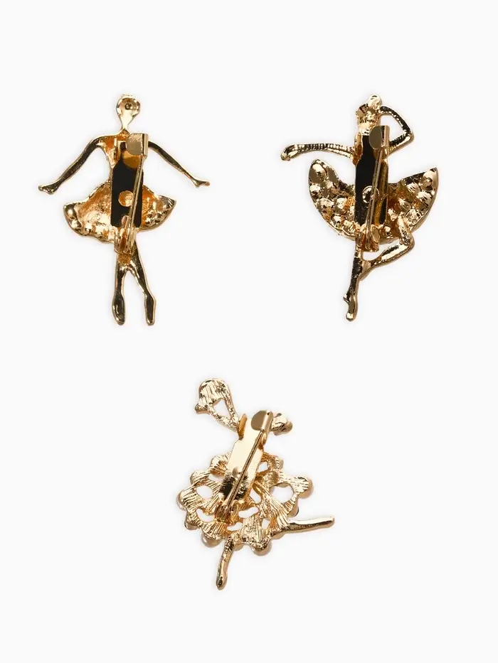 Броши "Балеринки" (набор 3шт), цвет микс в золоте