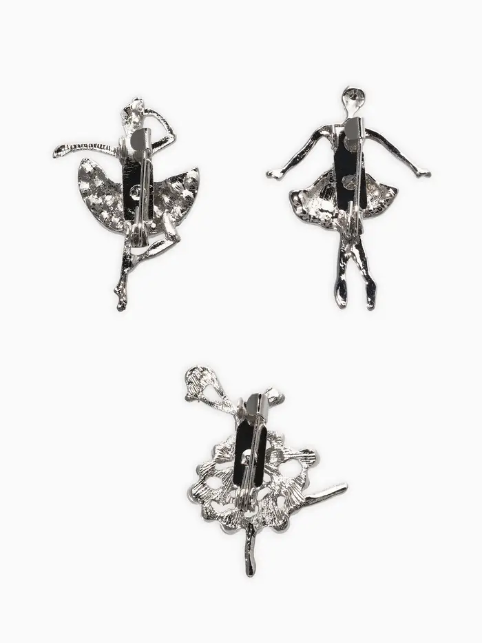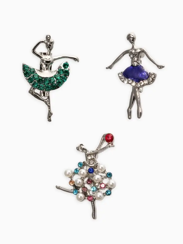 Броши "Балеринки" (набор 3шт), цвет микс в серебре