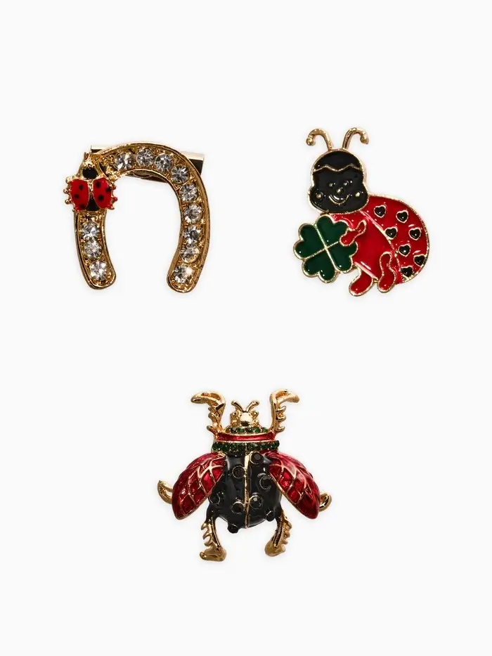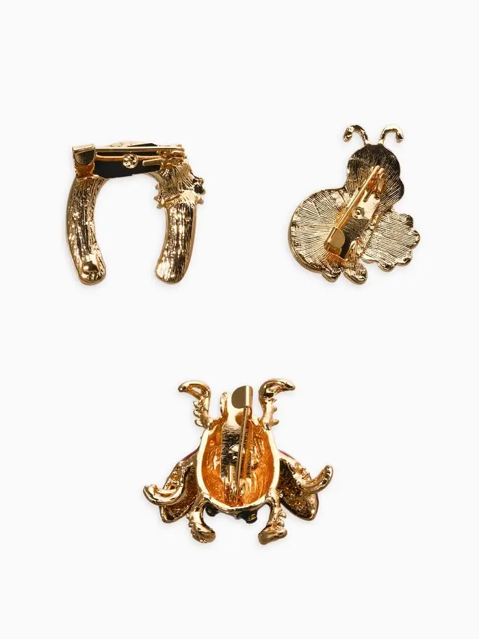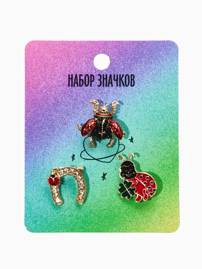 Броши "Счастливый случай" (набор 3шт), цветной в золоте