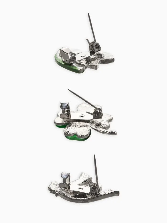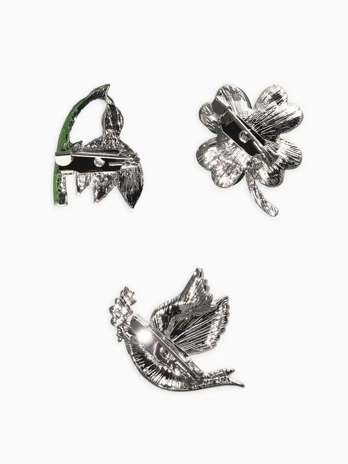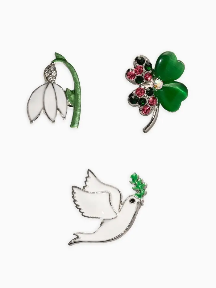 Броши "Голубь, клевер, подснежник" (набор 3шт), цветной в серебре