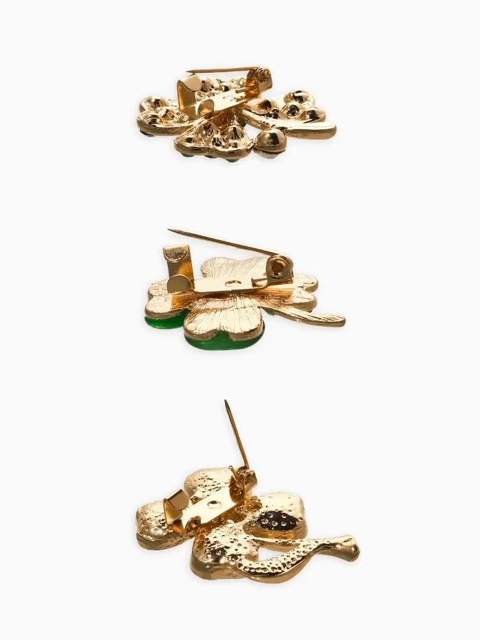 Броши "Клевер" (набор 3шт), цвет зелёный в золоте