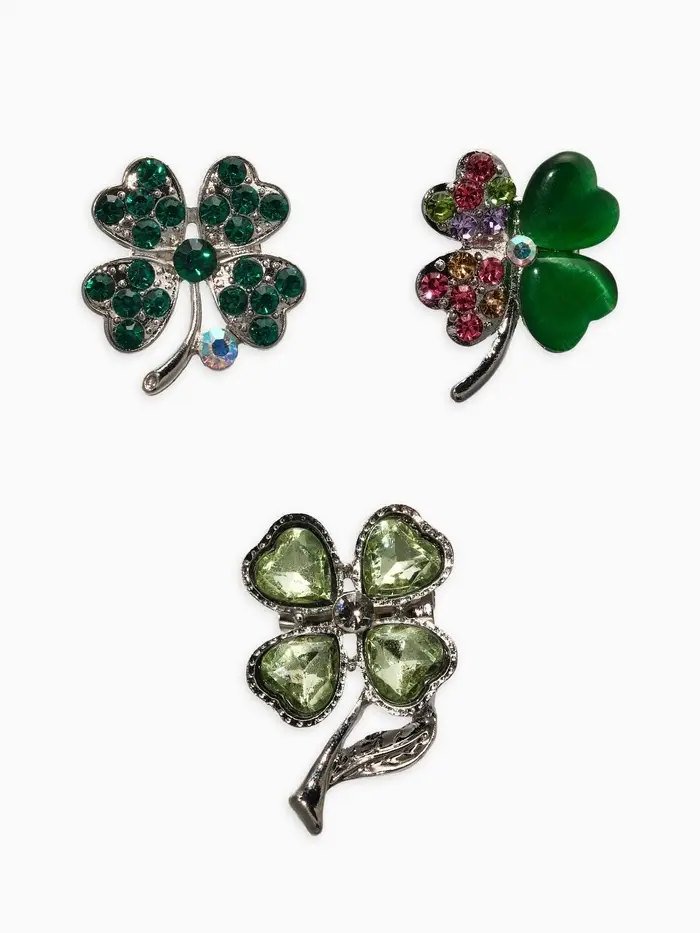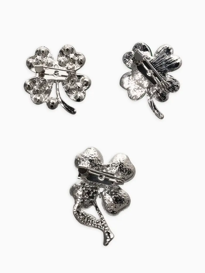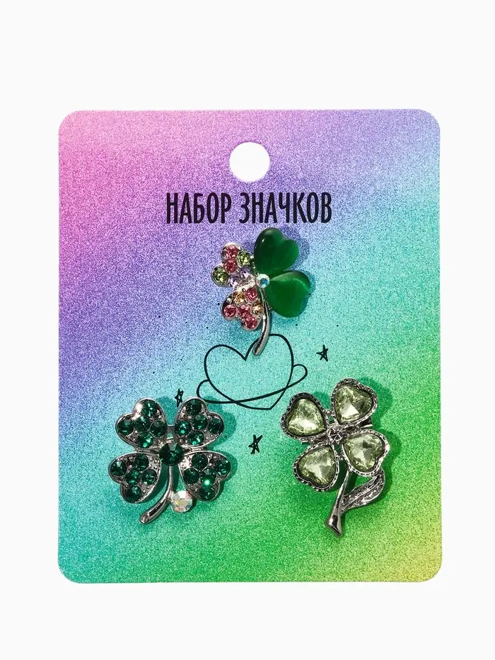 Броши "Клевер" (набор 3шт), цвет зелёный в серебре