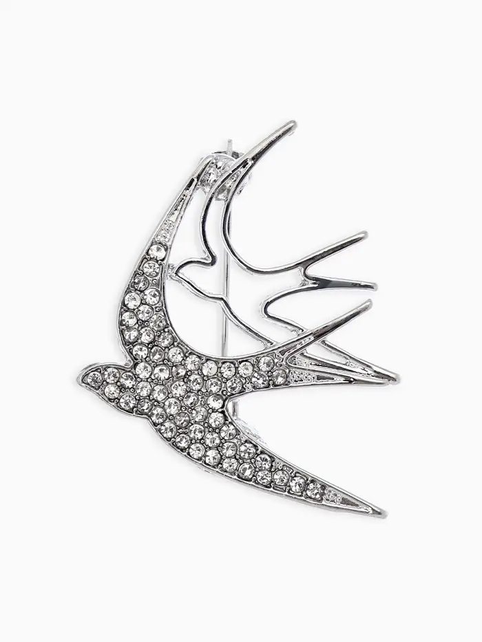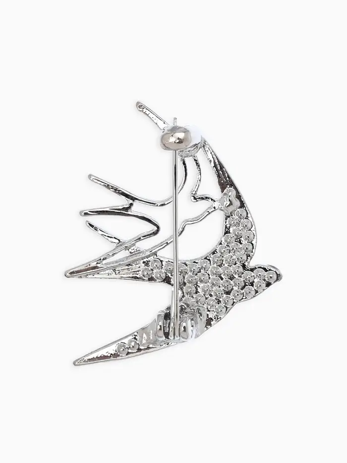 Брошь "Ласточки", цвет белый в серебре