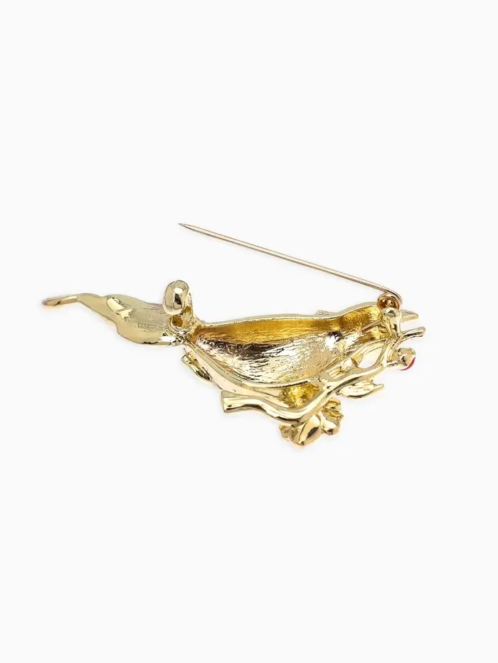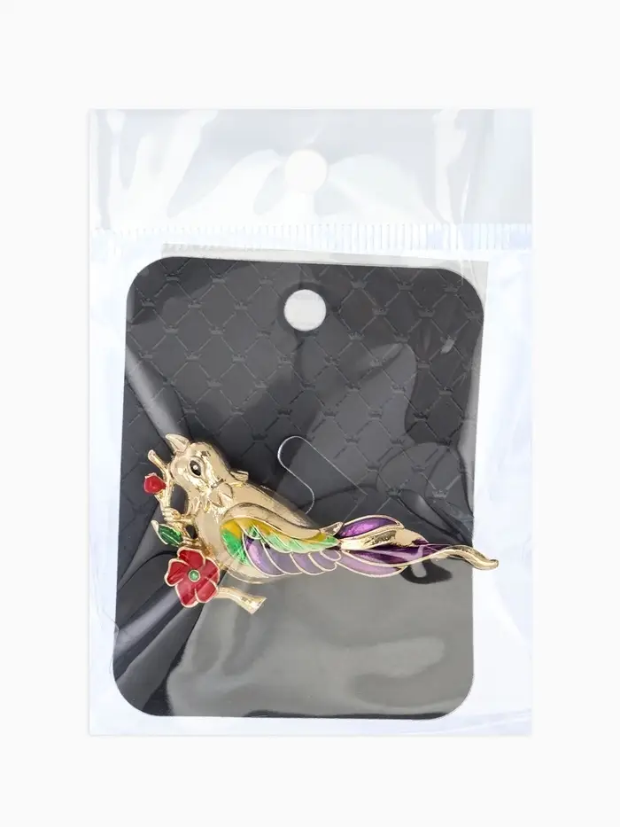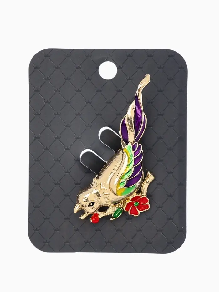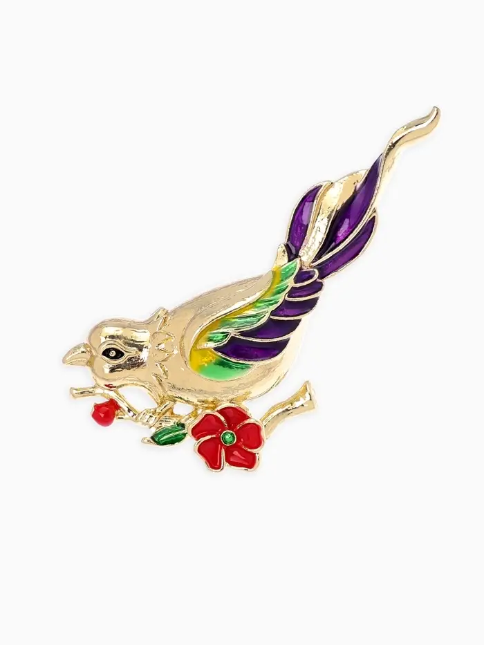 Брошь "Птичка" экзотическая, цветная в золоте