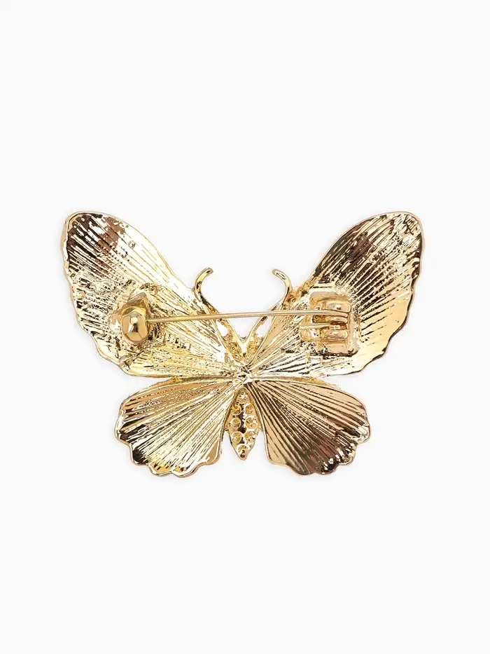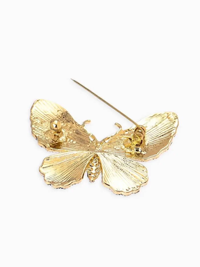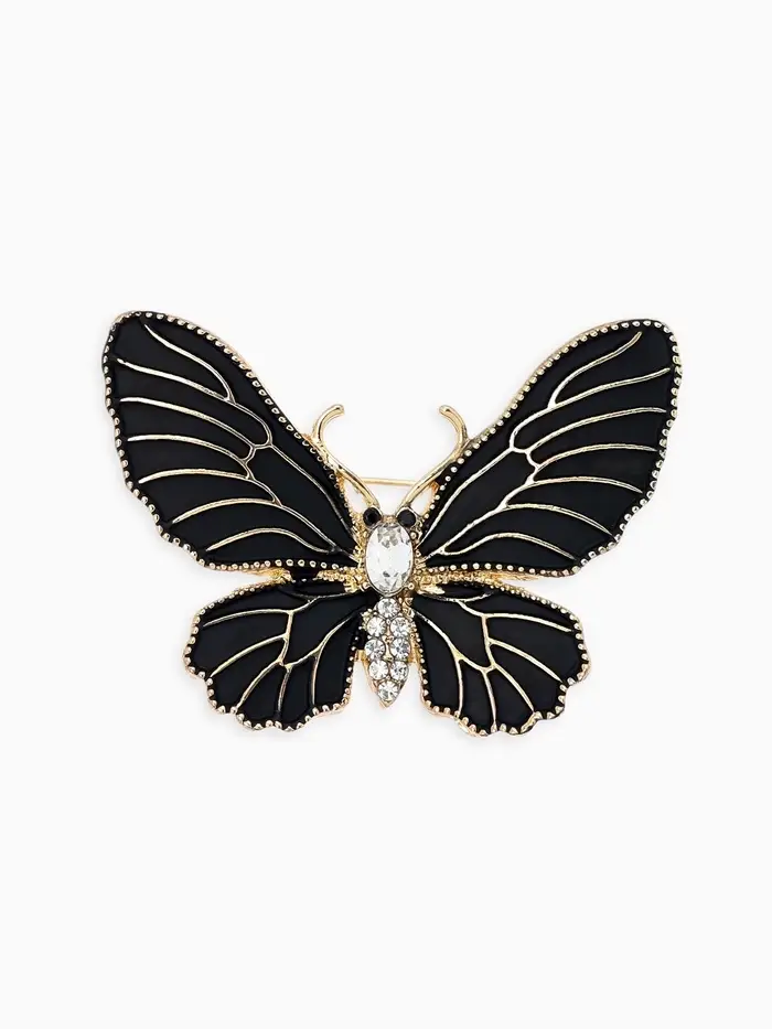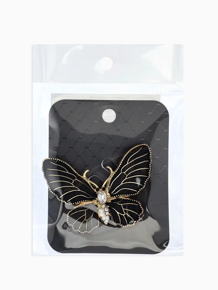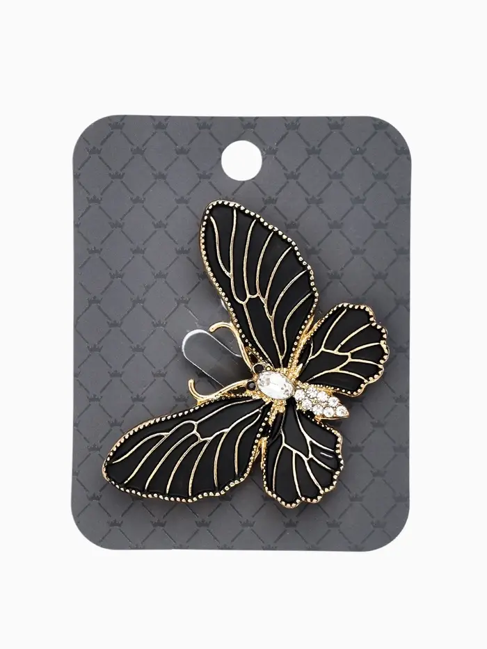 Брошь "Бабочка" матовая, в жилки, цвет чёрный в золоте