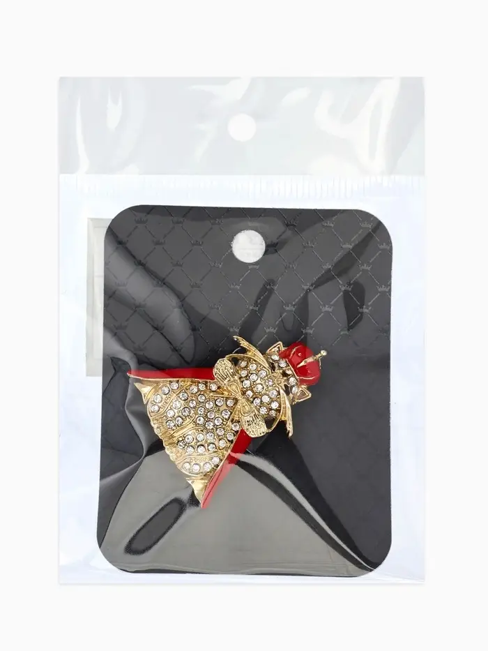 Брошь "Кошка Царица", цвет красно-белый в золоте