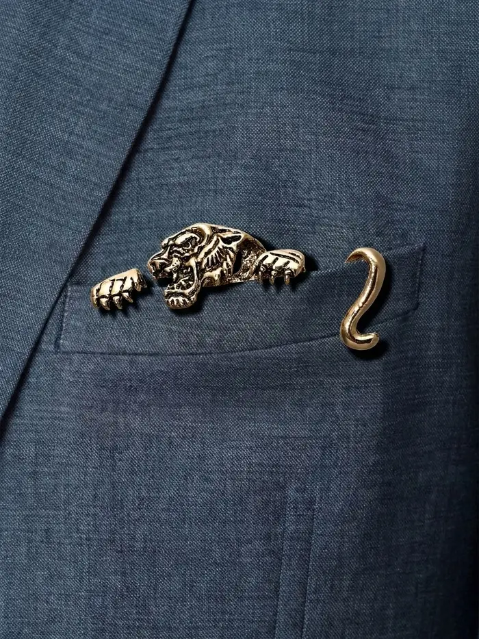 Брошь для кармана "Тигр", цвет чернёное золото