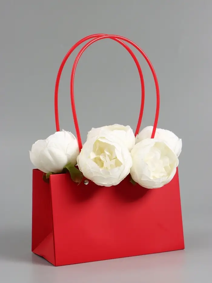 Сумка для цветов влагостойкая, красная, 22x10.5x13.5 см