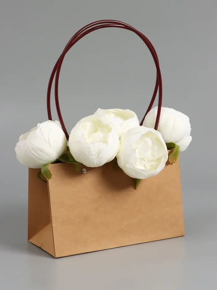 Сумка для цветов влагостойкая, крафт, 22x10.5x13.5 см