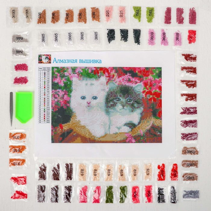 Алмазная мозаика с полным заполнением на холсте «Котята», 22 х 32 см