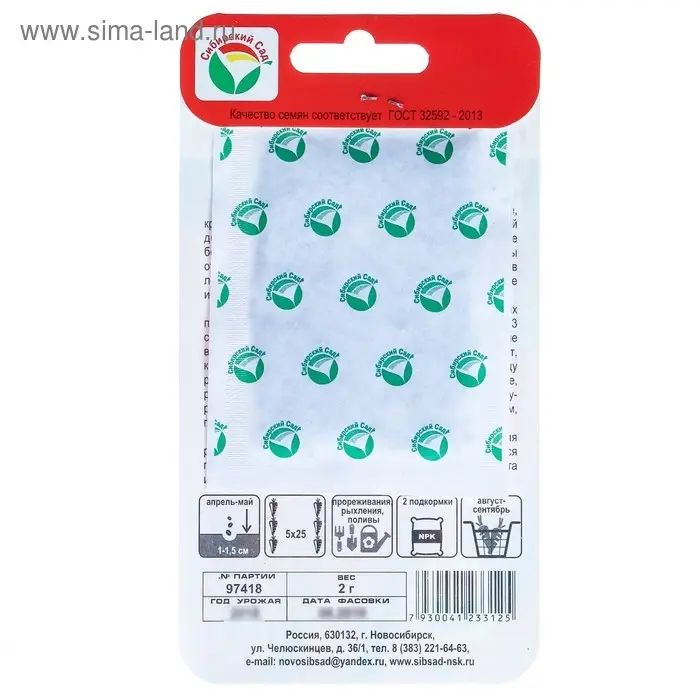 Среднеспелый сорт нантского типа. Образует ровные, гладкие, ярко-оранжевые корнеплоды длиной до 20 см, массой до 150 г. Мякоть сочная, нежная, сладкая, сердцевина небольшая, по окраске не отличается от мякоти. Корнеплоды отличного вкуса, являются великолепным лакомством для детей в летний период. Используется для потребления в свежем виде и зимнего хранения. Морковь лучше растет на легких суглинистых и супесчаных почвах. Посев в конце апреля- начале мая на глубину 3 см, расстояние между рядами 18 см. Через две недели после всходов морковь прореживают. Второе прорежевание производят, когда корнеплоды достигнут диаметра 1 см, оставляя между растениями 5-6 см. В дальнейшем уход заключается в прополке, рыхлении и поливе. Подзимние посевы производят, когда температура опустится до 5 С. Семена заделывают на глубину 1-2 см, поверхность мульчируют торфом. Для ускорения процесса всхожести семян, оздоровления растений, улучшения завязываемости плодов рекомендуется пользоваться специально разработанными стимуляторами роста и развития растений.