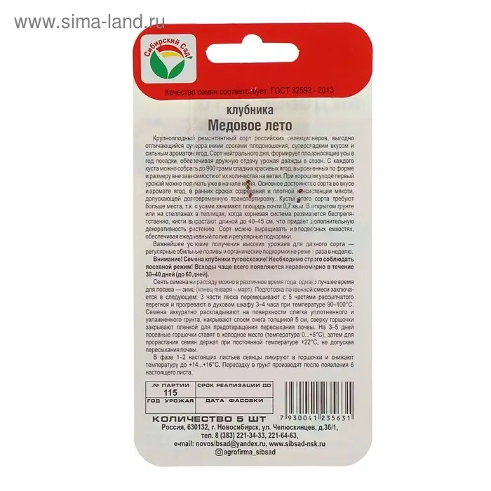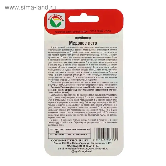 Семена Клубника "Медовое лето", 5 шт