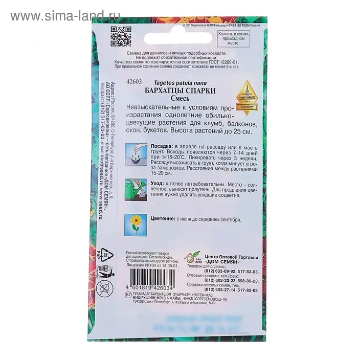 Семена цветов Бархатцы отклоненные "Спарки" Дом семян, О, 80 шт
