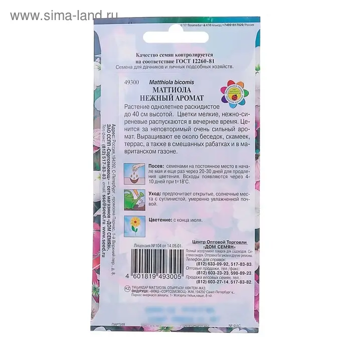 Семена цветов Маттиола "Нежный аромат" Дом семян, О, 165 шт