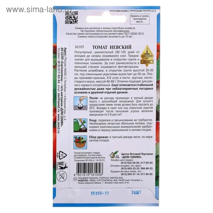 Семена Томат "Невский" Дом семян, раннеспелый, 20 шт