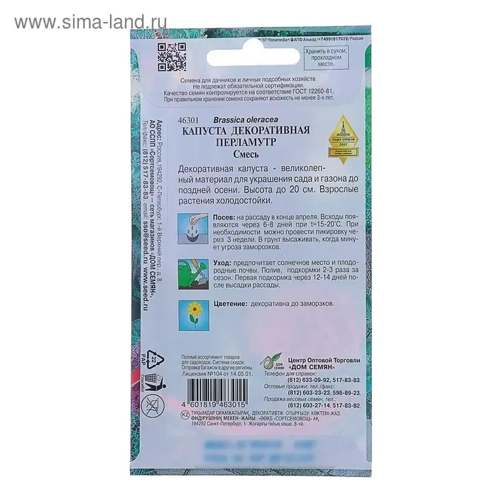 Семена цветов Капуста декоративная "Перламутр" Дом семян, смесь, О, 45 шт