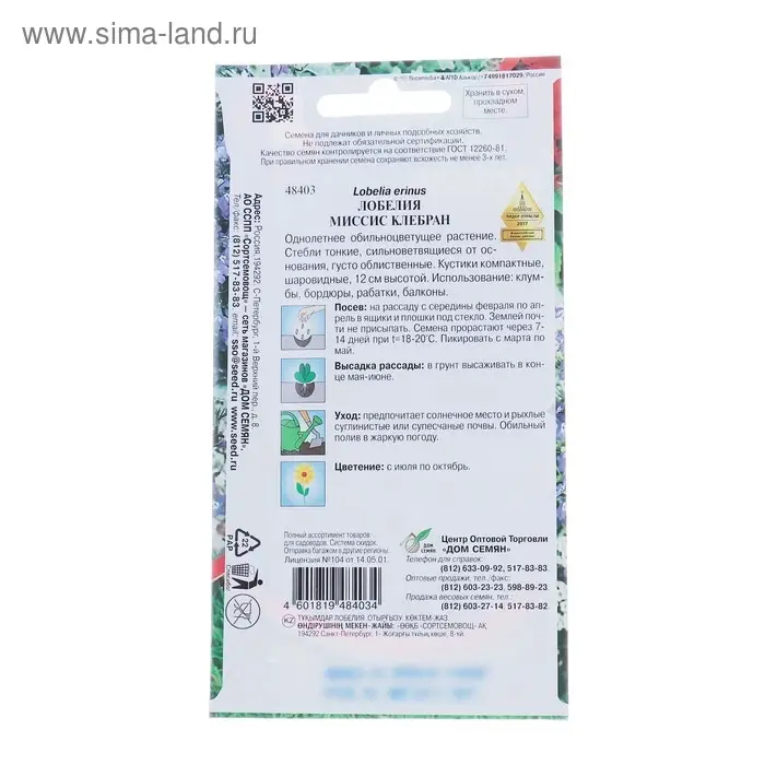 Семена цветов Лобелия "Миссис Клебран" Дом семян, О, 1400 шт