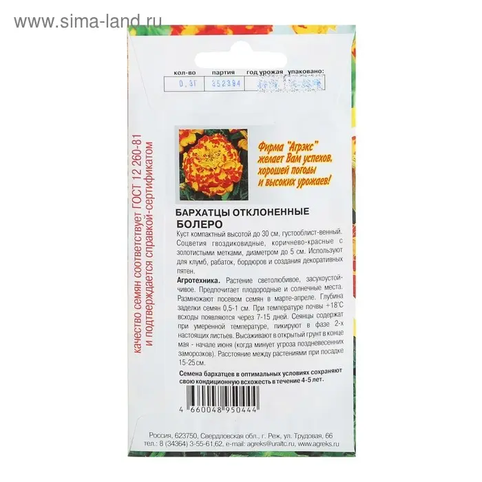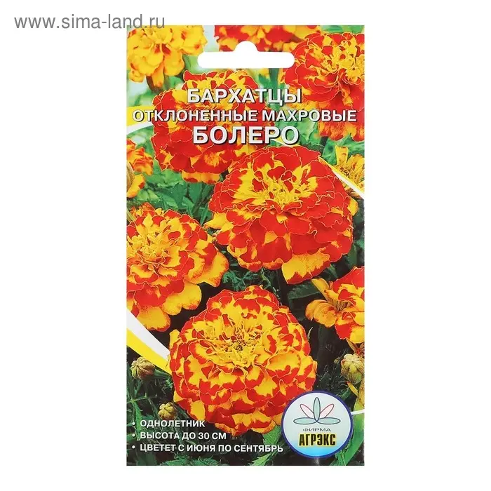 Семена Цветов однолетние Бархатцы "Болеро", отклонённые, махровые, 0,2 г