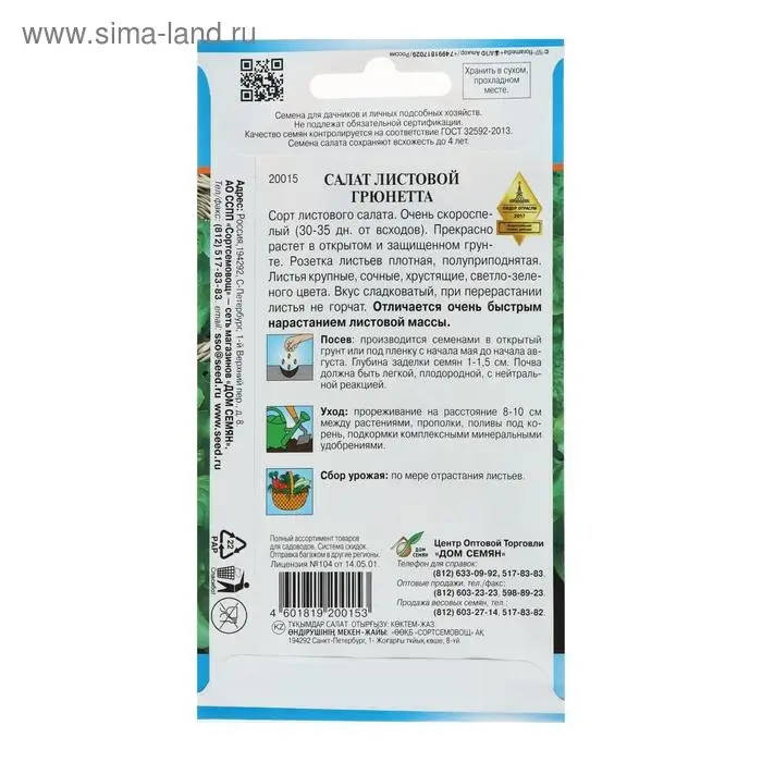 Семена Салат "Бутерброд" листовой, 0,5 г