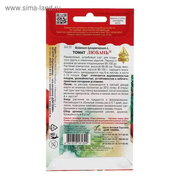 Раннеспелый, штамбовый сорт для открытого грунта и пленочных укрытий. Период от всходов до начала плодоношения 95-100 дн. Растение компактное, высотой 60-80 см. Плоды ярко-красные, округлые, массой 90-100 г, хорошего вкуса. Первая кисть закладывается над 6-м листом, в кисти 5-10 плодов. Сорт отличается выровненностью плодов, урожайностью, устойчивостью к неблагоприятным погодным условиям.