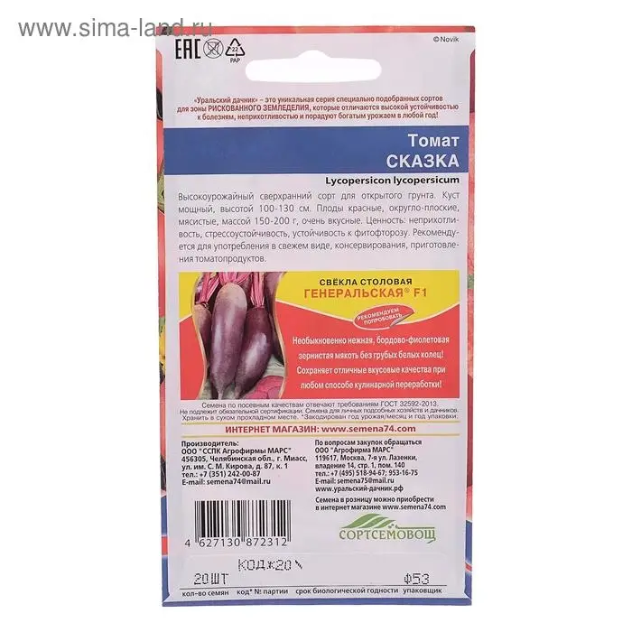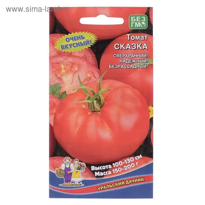 Высокоурожайный, сверхранний сорт для открытого грунта. Куст мощный, высотой 100-130 см. Плоды красные, округло-плоские, мясистые, массой 150-200 г, очень вкусные.