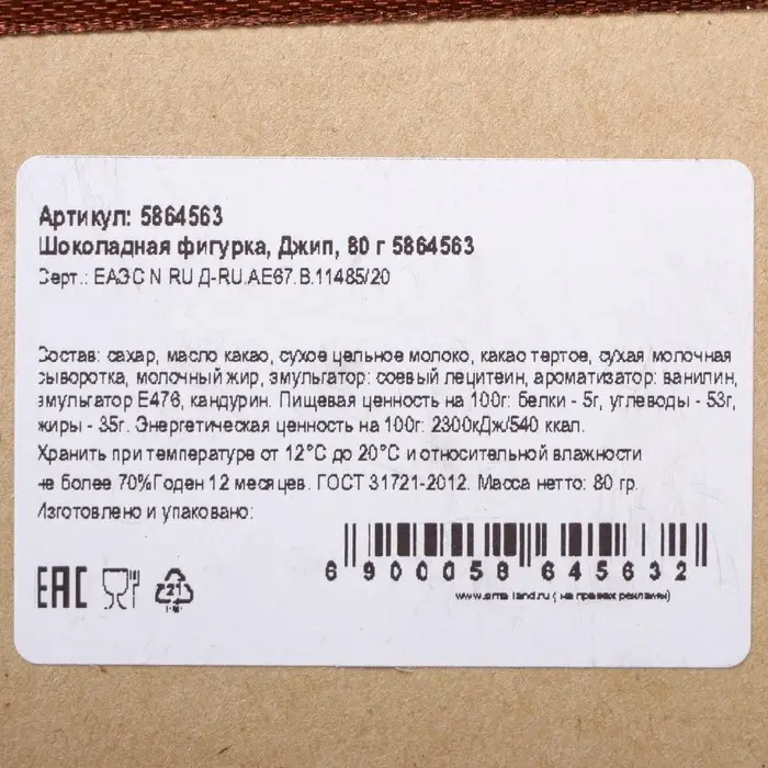 Шоколадная фигурка «Джип», 80 г
