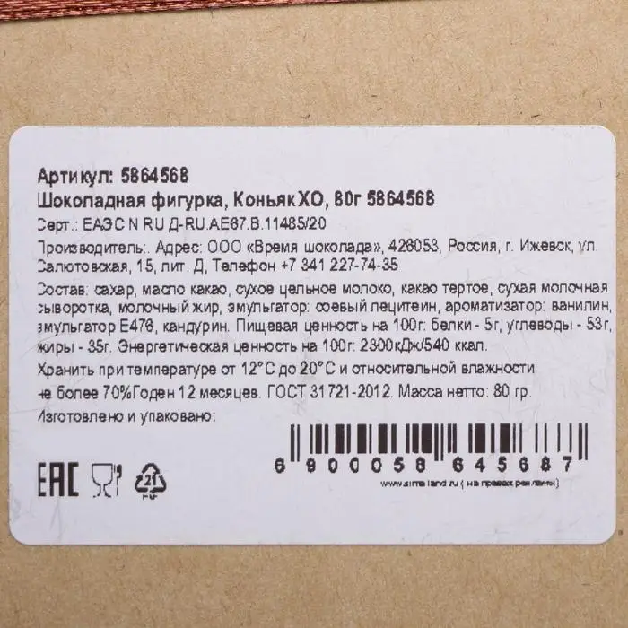 Шоколадная фигурка «Коньяк XO», 80 г