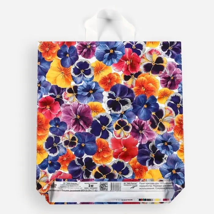 Пакет "Цветочки", полиэтиленовый, с петлевой ручкой, 42 x 38 см, 37 мкм