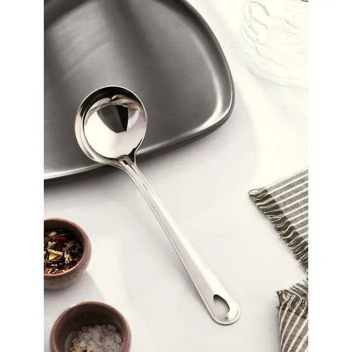 Половник — Удобная ручка обеспечивает надёжный захват, а материал из нержавеющей стали гарантирует долговечность и устойчивость к коррозии. Этот половник легко моется, подходит для посудомоечных машин и станет отличным дополнением к вашему кухонному инвентарю.