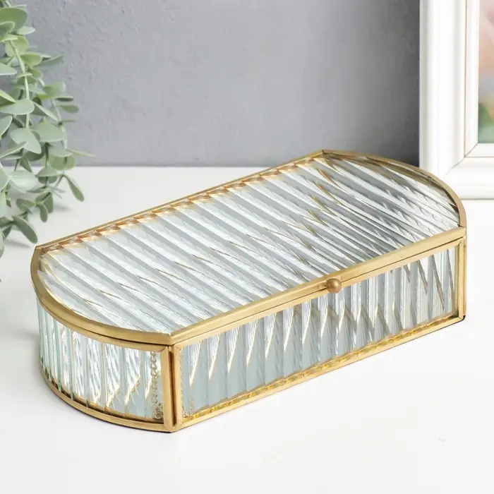 Шкатулка стекло с металлическим каркасом "Волны" золото 5,5х13,5х24,5 см