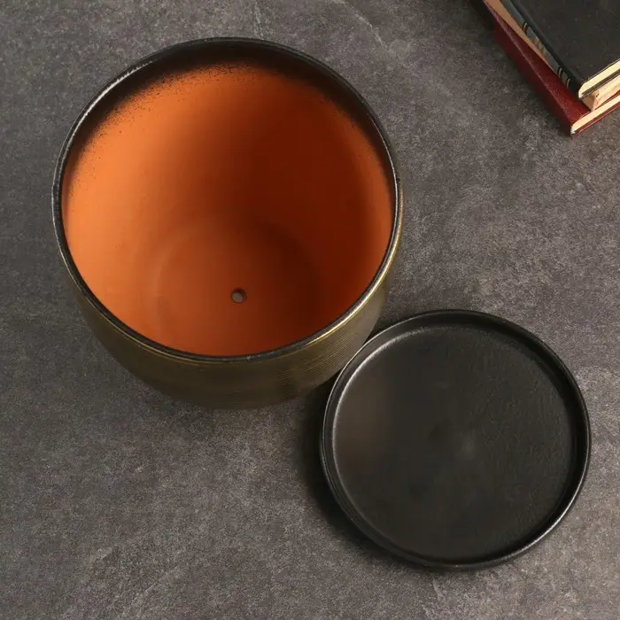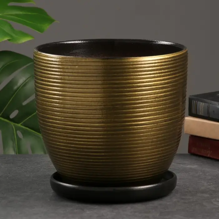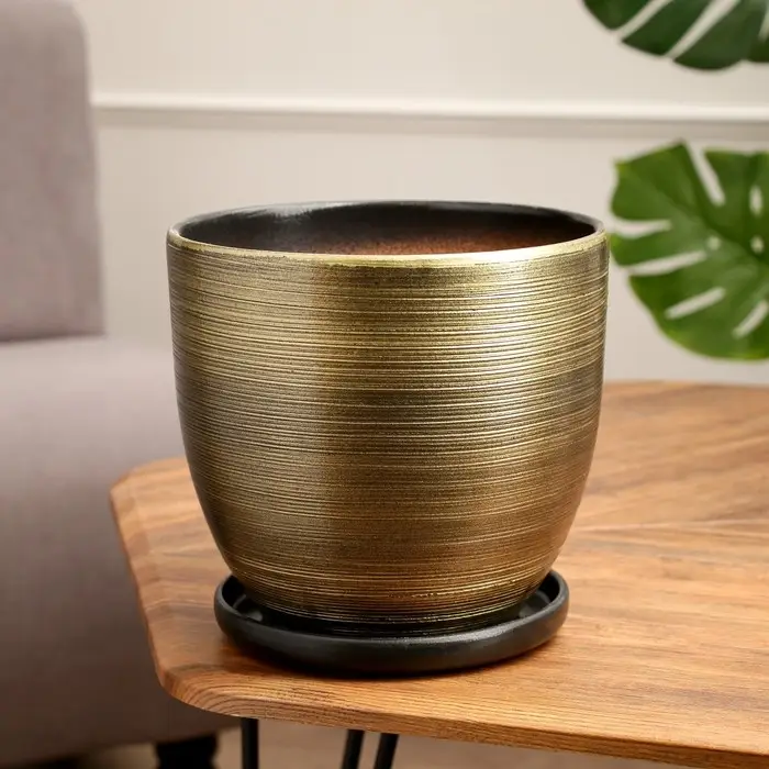 Горшок цветочный с поддоном 4,7 л, коричневый, керамика, "Изысканность" (М)