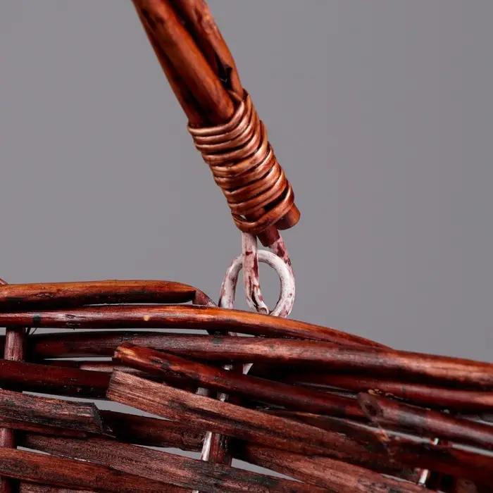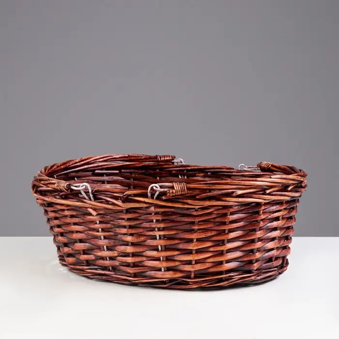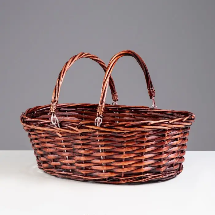Плетёная корзина – выполнена из ивовой лозы. Имеет прочное основание и боковины, а также надёжные ручки. Ивовая лоза обработана специальным защитным средством и покрашена.