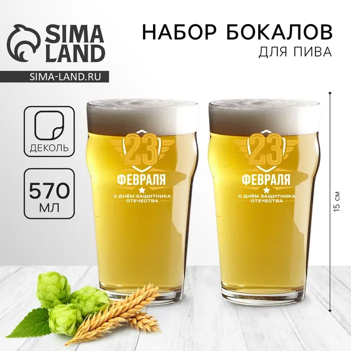 Подарочный набор пивных бокалов «23 февраля», 570 мл