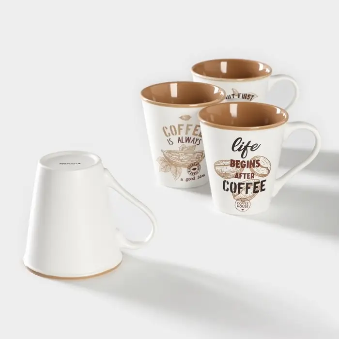 Набор кружек Доляна «Вкусный кофе» изготовлен из качественного костяного фарфора и украшен красивым рисунком. Фарфоровые изделия обладают прочностью, выдерживают перепады температур. Кружки рассчитаны на ежедневное использование.