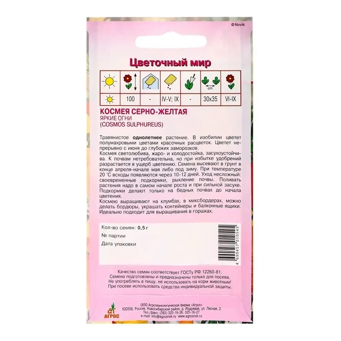 Семена Космея «Яркие огни», 0.5 г, «Агрос»