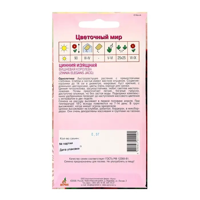 Семена Цинния «Изящная Вишневая Королева», 0.5 г, «Агрос»