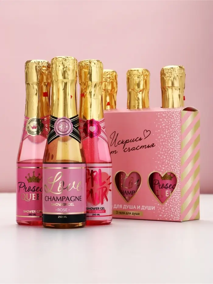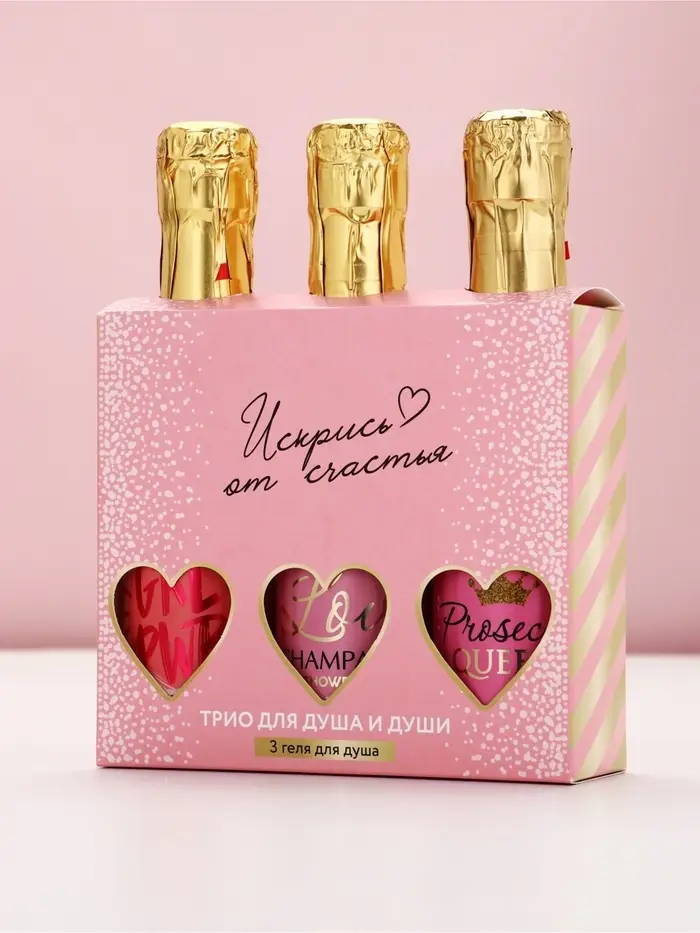 Гель для душа шампанское «Искрись от счастья», набор 3 шт х 250 мл, Чистое счастье