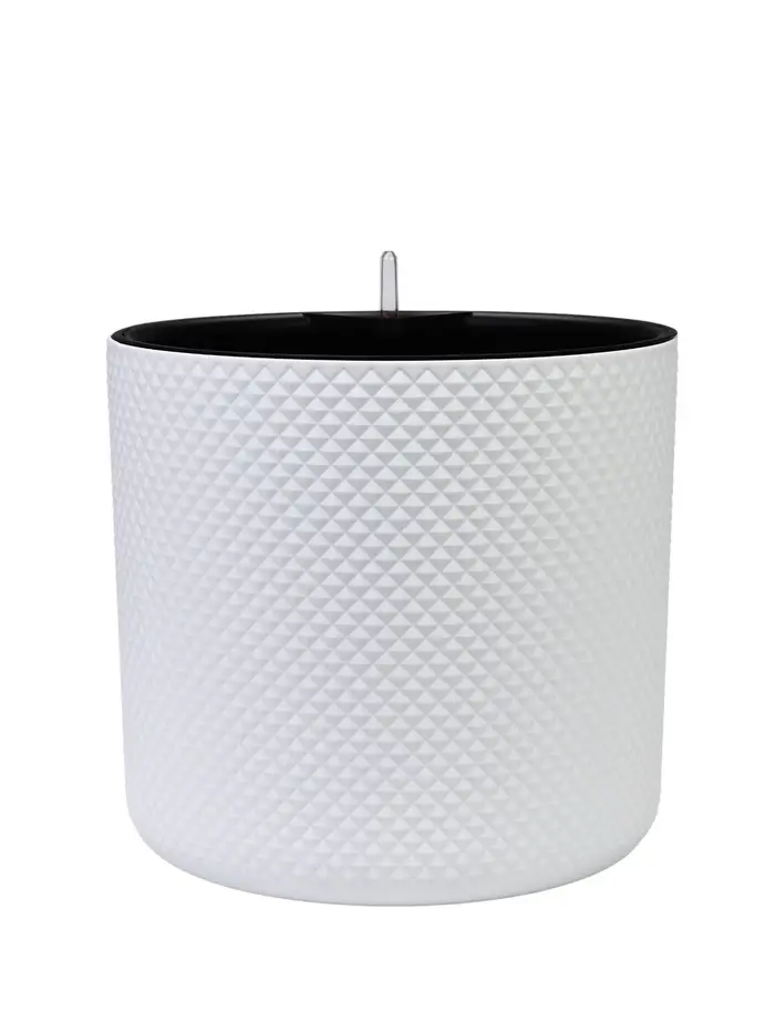 Кашпо для цветов «Фасет», 13.5 л, d=28 см, h=25.5 см, пластиковое, с автополивом, со вставкой, белое