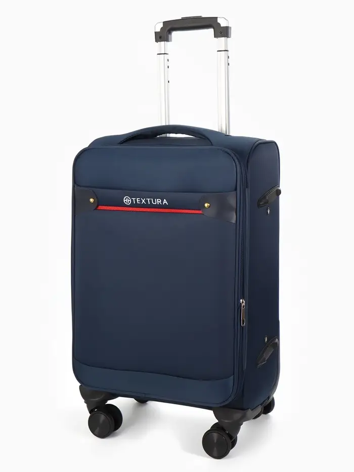 Чемодан 20",Текст,36*25*58,отд на молнии,1 нар/карм, увелич,код замок,4 колеса, синий