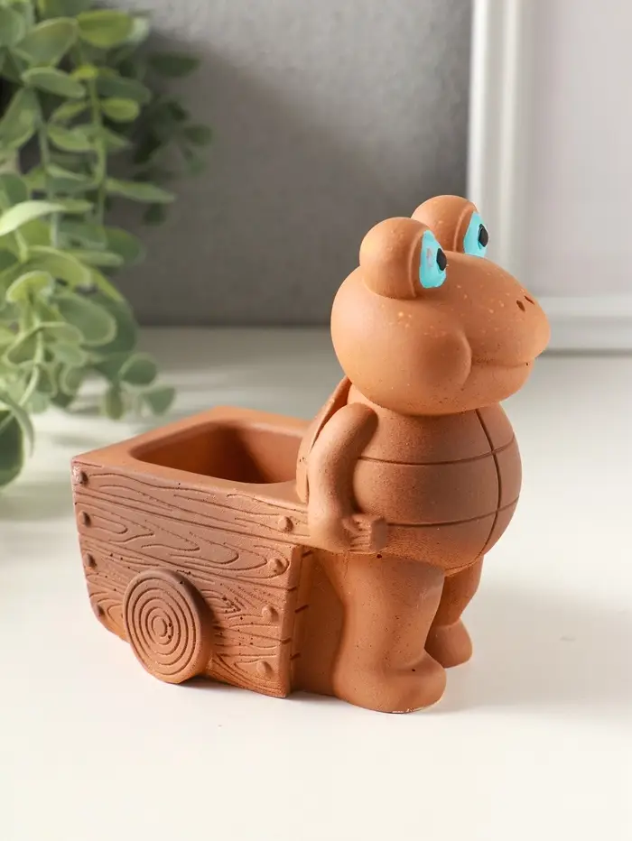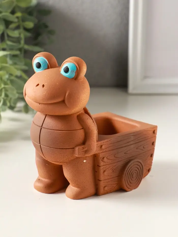 Подставка для мелочей «Черепаха с тележкой», 12×10×8 см, гипс, охра