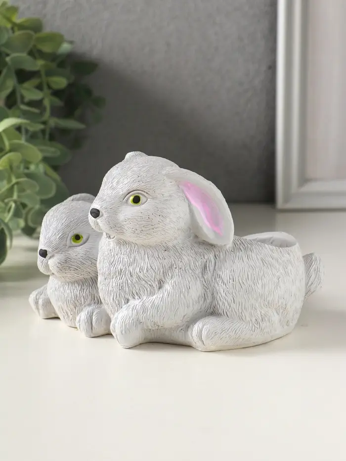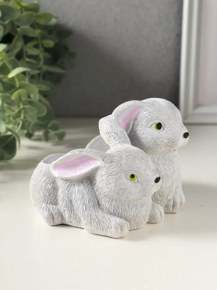 Подставка для мелочей «Кролики» 8×13×10 см, серый, гипс