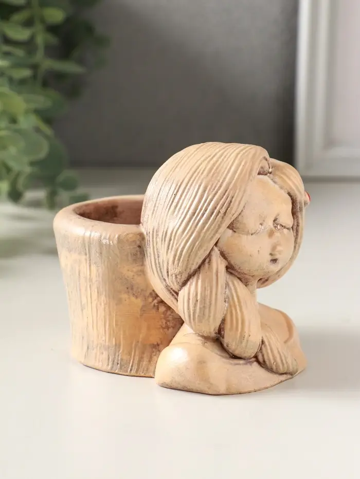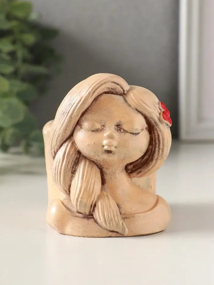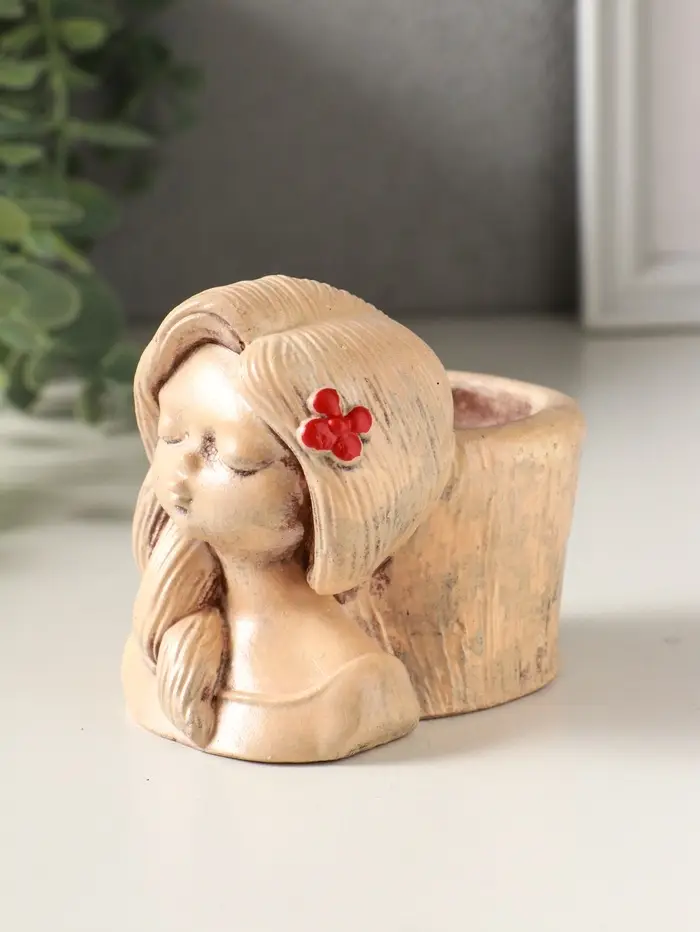 Подставка для мелочей "Русская красавица" 8х8х6 см, гипс, слоновая кость