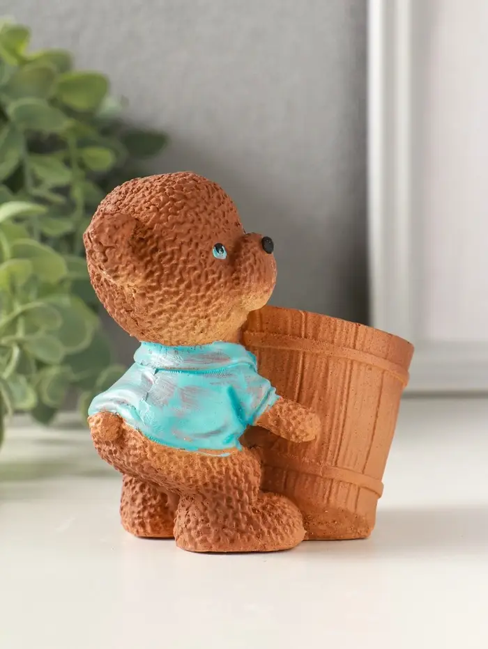 Подставка для мелочей «Медведь с горшком» 9×10×6 см, мультиколор, гипс