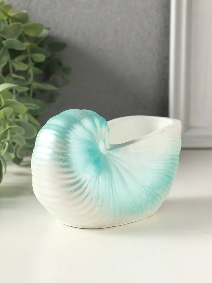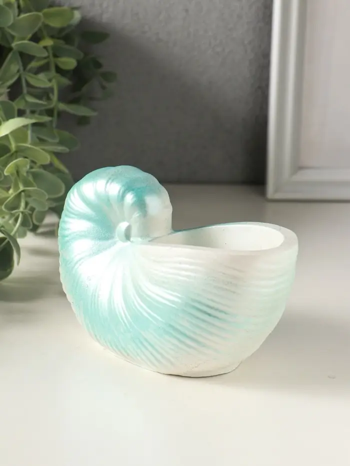 Подставка для мелочей «Ракушка» 8×12×6 см, гипс, голубой перламутр