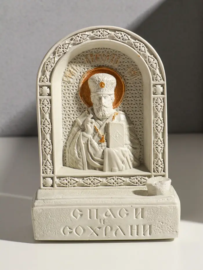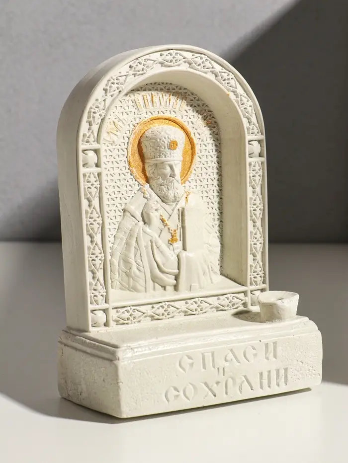 Икона с подставкой под свечу "Николай Чудотворец" гипс, роспись, 18х13х6 см