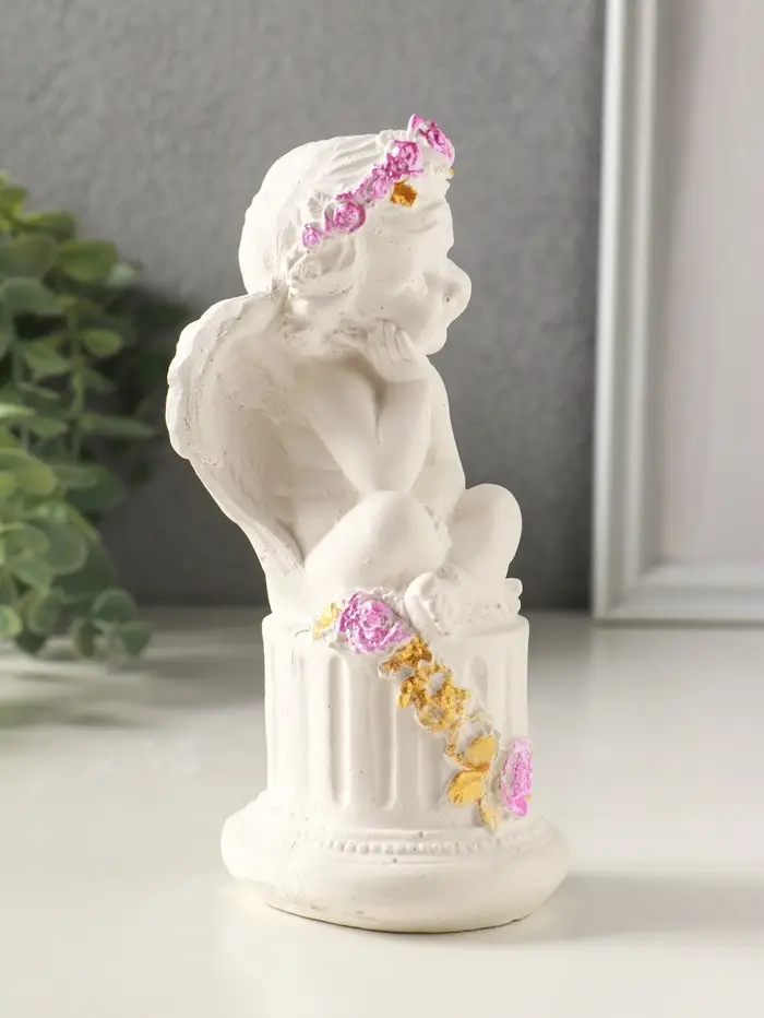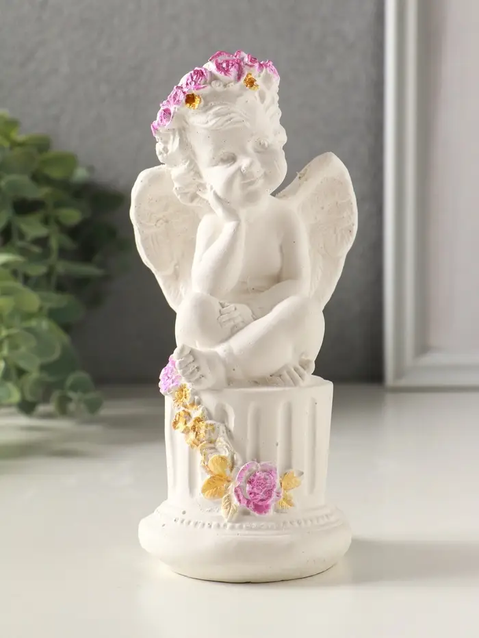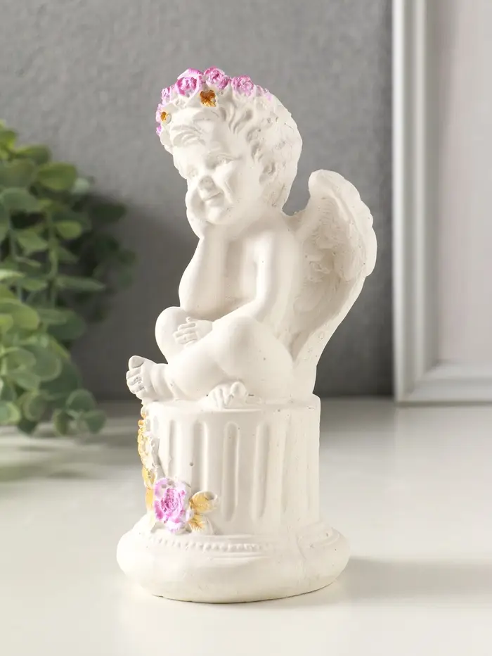 Фигурка гипс «Ангел на тумбе с цветами», 15×7 см, белый с росписью
