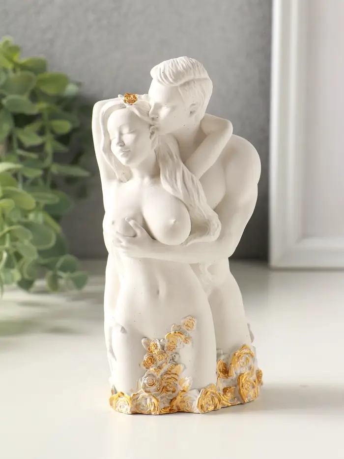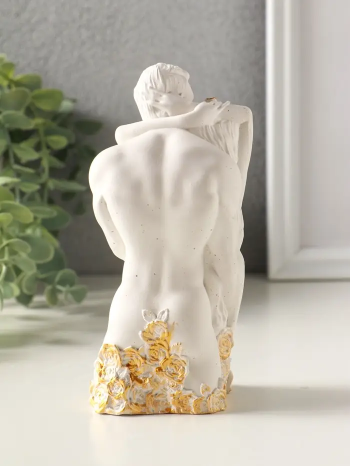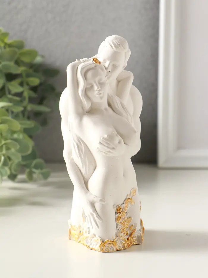 Статуэтка "Влюбленные" 14х6 см, гипс, белый с позолотой