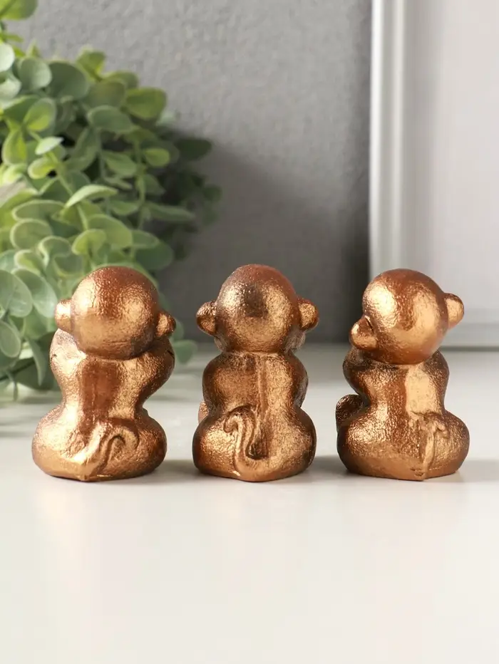 Набор фигурок гипс «Обезьянки ничего не вижу не слышу не скажу», 4 шт., 6 см, под бронзу