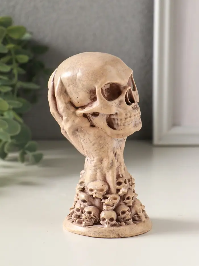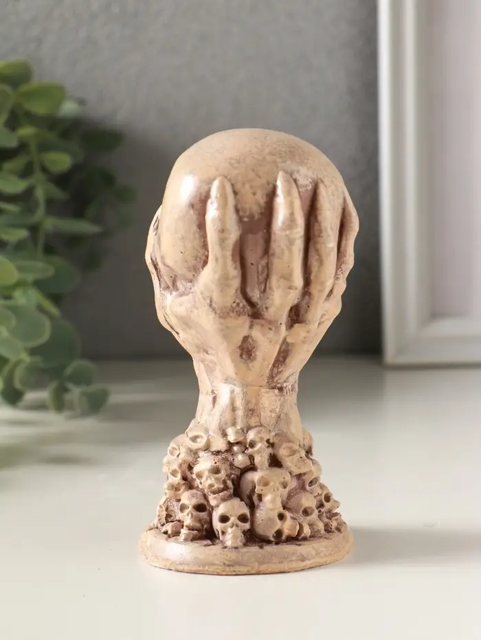 Статуэтка "Череп на руке" высота 12 см, цвет слоновая кость